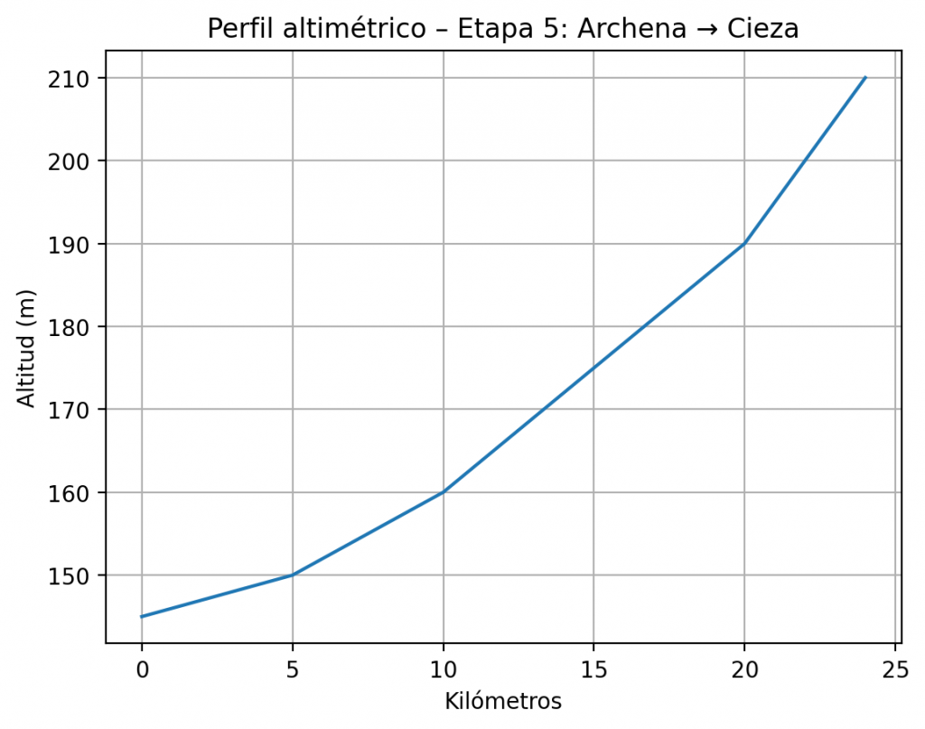 Esta etapa marca un cambio en el paisaje: dejamos atrás el curso continuo del Segura y nos adentramos en caminos rurales, campos de cultivo y zonas más secas. Aunque no es una etapa difícil en desnivel, es importante planificar bien: hay menos servicios durante el trayecto.