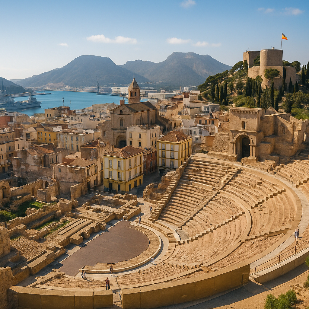 Los restos de aquella grandeza aún se alzan entre sus calles: el teatro romano, las murallas púnicas, termas, foros y templos… Cartagena no es historia muerta, es memoria viva.
