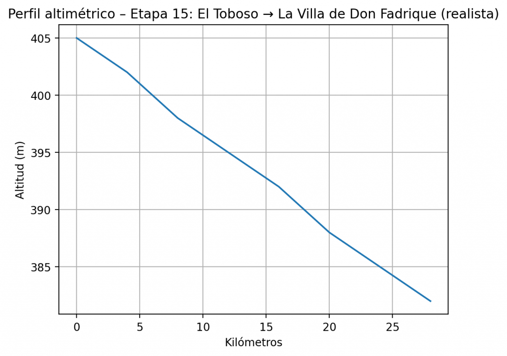 Etapa cómoda, con descenso suave y continuo por la llanura manchega.